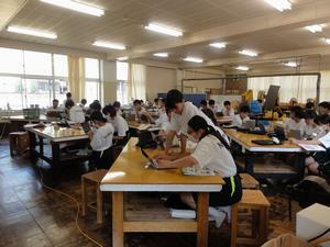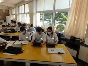 1年生の技術の授業では、タブレットで調べ学習を行いました。