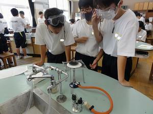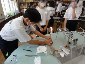 理科室では、これからのガスバーナーを使うにあたり、マッチの使い方の練習をしていました。初体験の生徒が多く、みんな悪戦苦闘しておりました。
