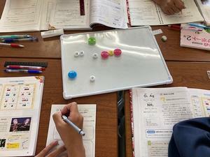 数学の授業では、「1センチメートルの方眼紙に、面積が2平方センチメートルの正方形を描きましょう」という問題に、生徒達は試行錯誤して一生懸命に考えていました。
