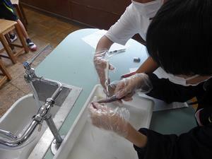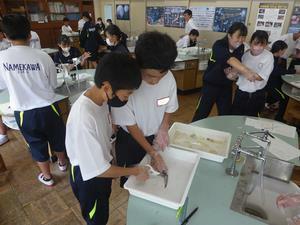 1学年の理科で、メヒカリとエビの観察を実施しました。