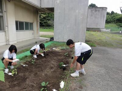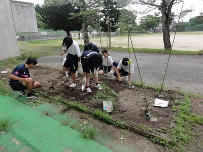 野菜の苗を植えました。ナスやピーマン、キュウリ等が収穫できる予定です。