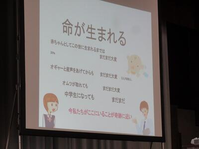 本日、3学年で、医師の太田代先生による「いのちの教育」が行われました。内容は、エイズ・性感染症に関する内容でした。特に梅毒患者が急増中であることに驚きました。検査と治療によって自分と大切な人、生まれてくる新しいいのちを守らなければならないことを学習しました。