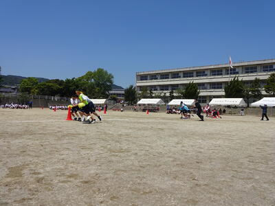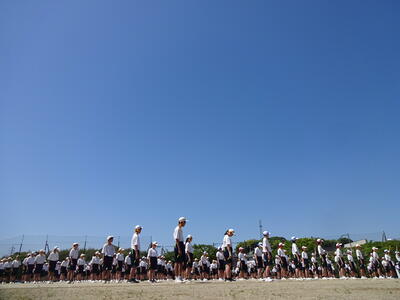 抜けるような青空の下、各係の動きを確認しながら、いくつかの種目を通して行いました。