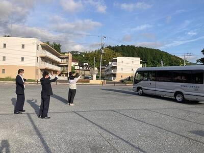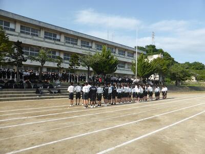 本日、県北総体陸上の2日目が実施されます。参加する生徒の皆さんは、元気に出発しました。