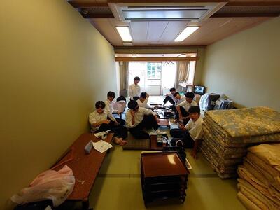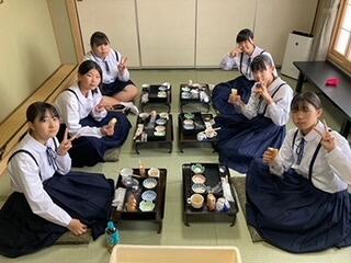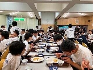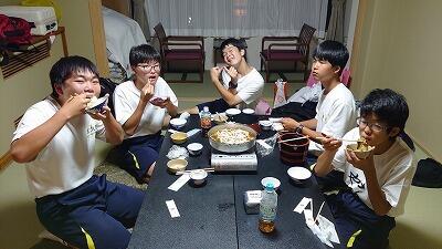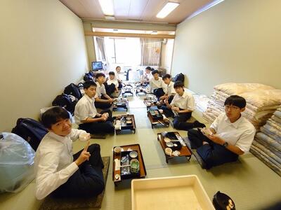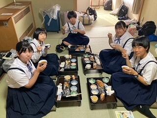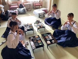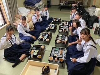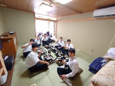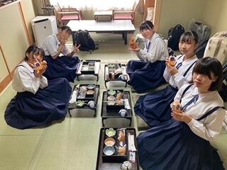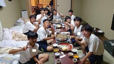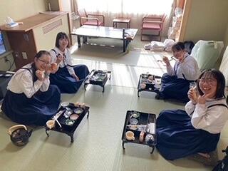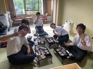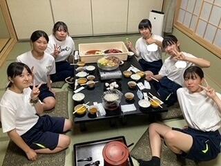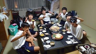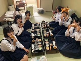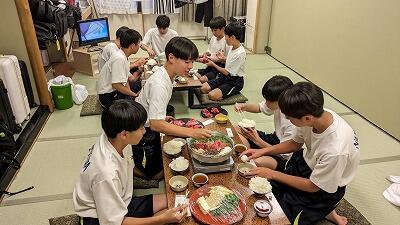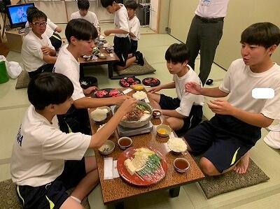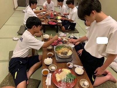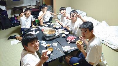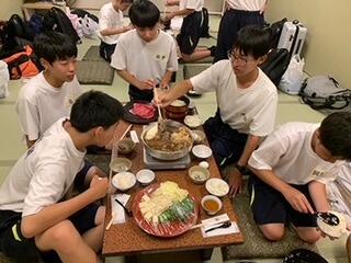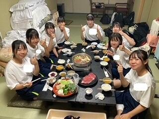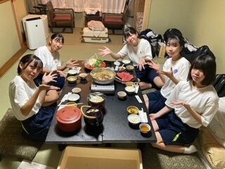 修学旅行の夕食といえば、「すき焼き」です。みんなで食べるとよりおいしく感じますね。
