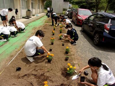 2年生が、プランターづくりや花壇のお手入れをしました。