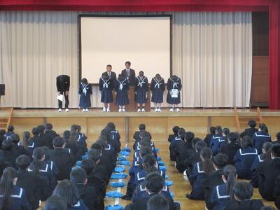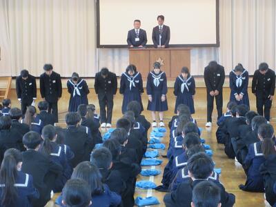 令和8年度 前期任命式が行われました。 投稿: 承認者 (11:34) カテゴリー: 今日の出来事 7つの常任委員会の委員長および、各学級4名の学級役員の任命が行われました。 呼名の際には、一人一人大きな返事をし、委員会や学級の中心として今後の活躍が期待されます。校長先生からは、学級での役割について、「リーダーシップを発揮すること」「行事の企画・運営を行うこと」「周囲と積極的にコミュニケーションをとっていくこと」が大切である、というお話がありました。 Tweet -